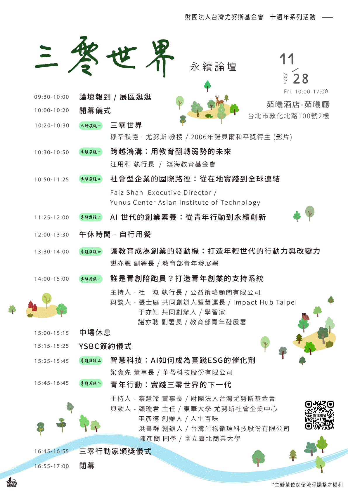 財團法人台灣尤努斯基金會十週年慶公益活動「三零世界-永續論壇」
