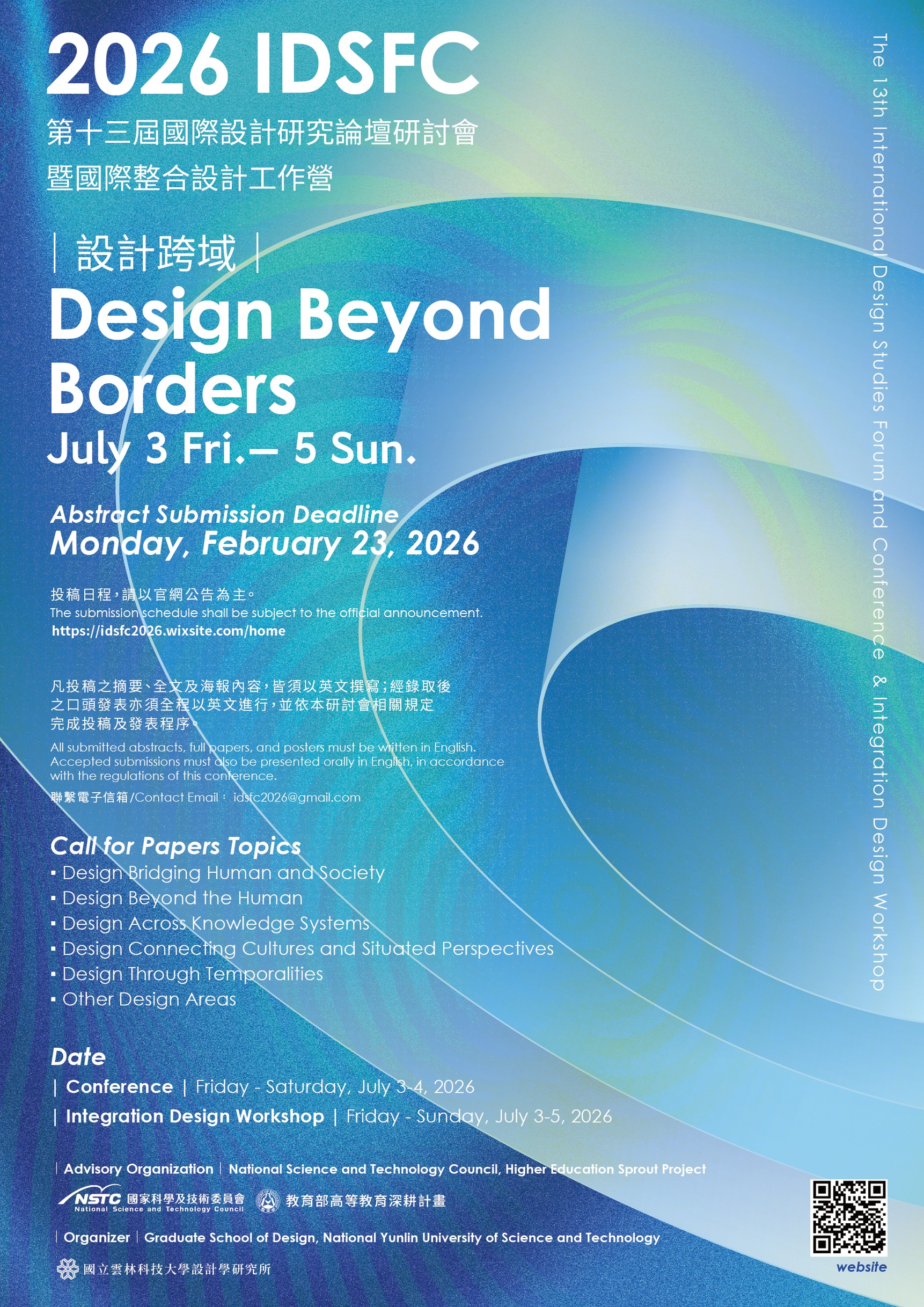 國立雲林科技大學辦理「2026 第十三屆國際設計研究論壇研討會暨國際整合設計工作營」徵稿
