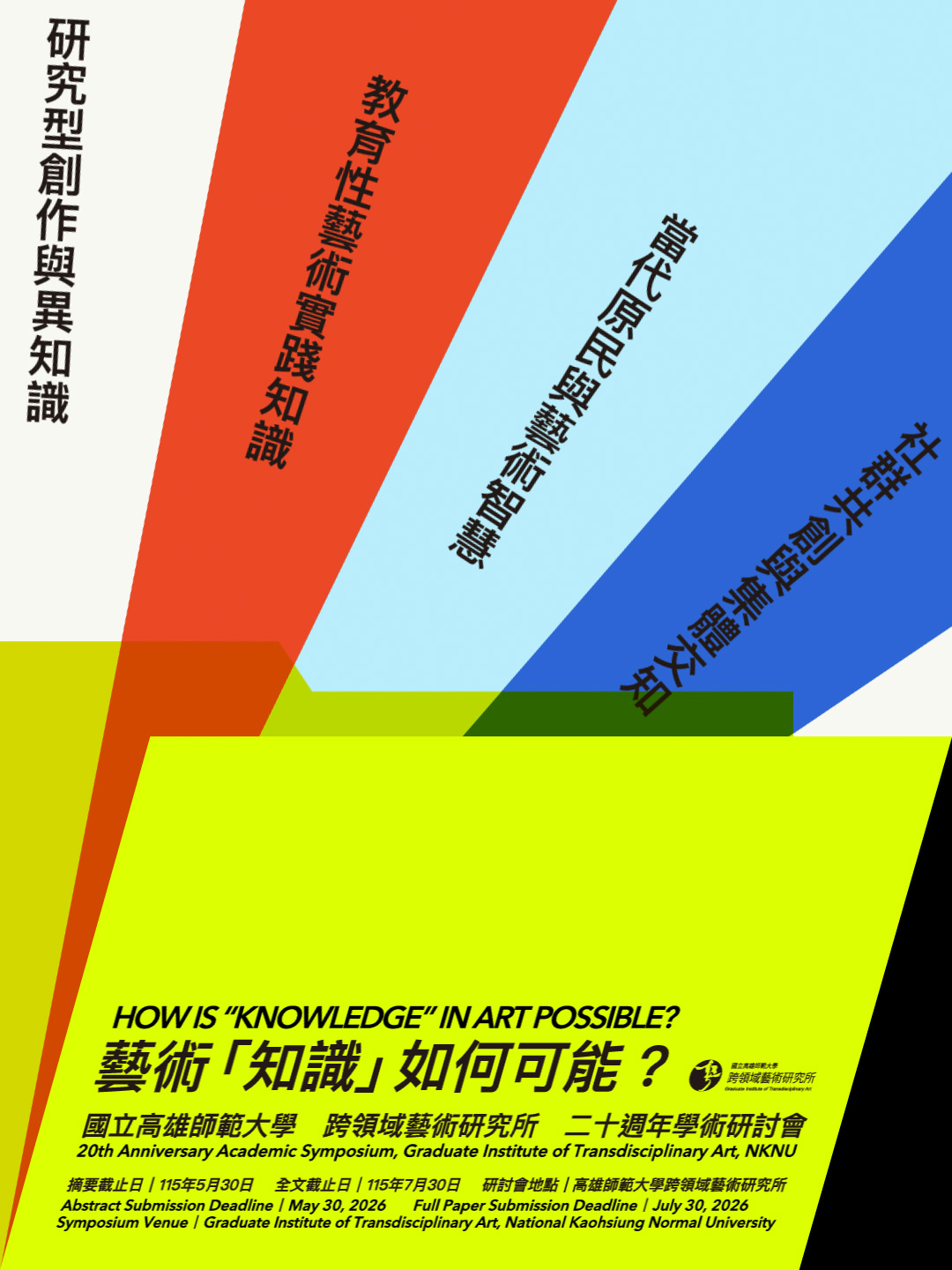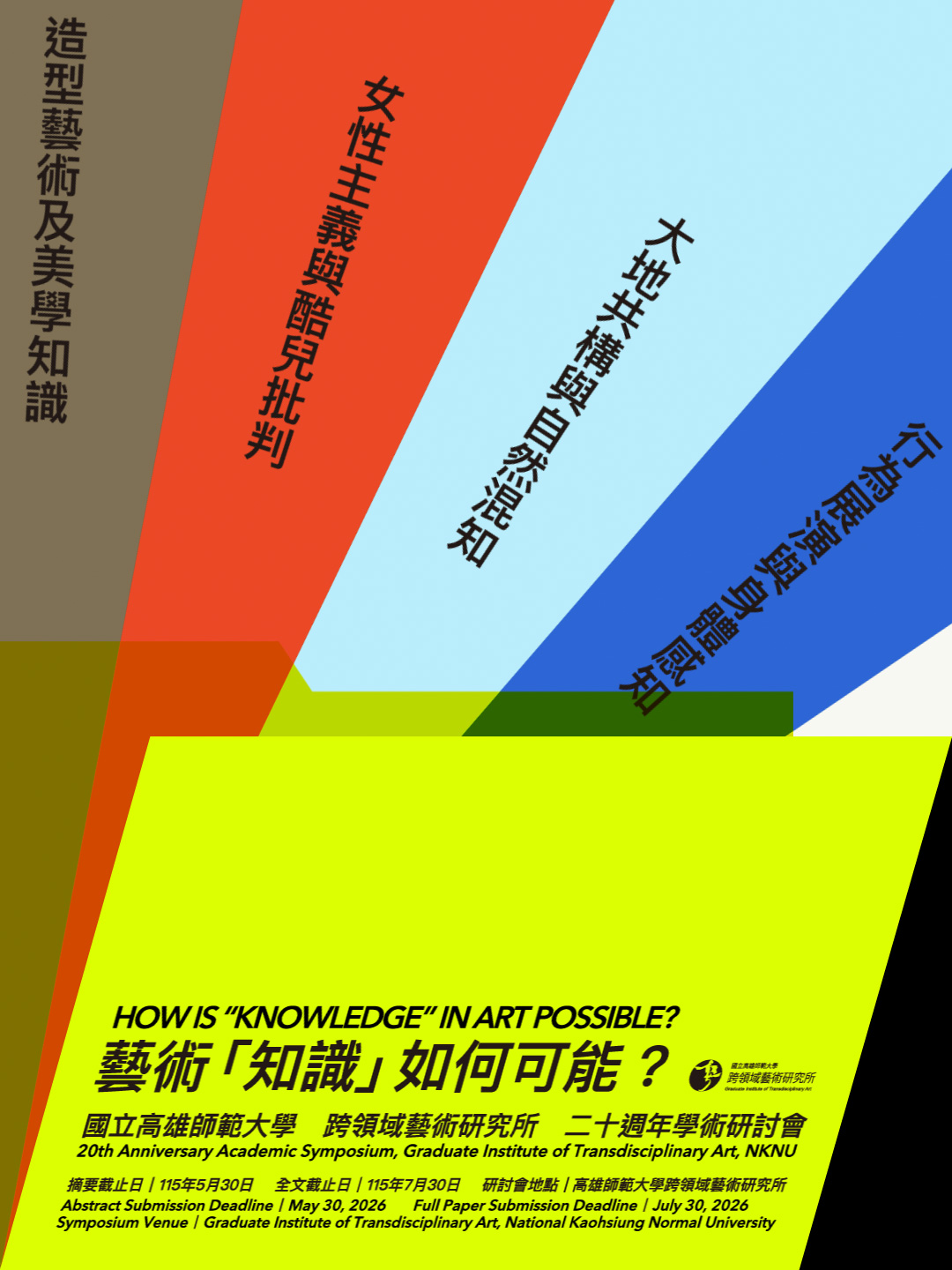 國立高雄師範大學領域藝術研究所二十週年學術研討會「藝術『知識』如何可能?」徵稿