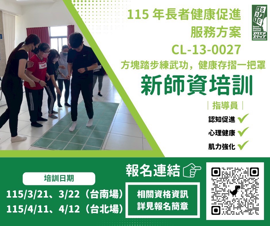 國立臺北護理健康大學「115年長者健康促進服務方案-方塊踏步練武功,健康存摺一把罩」新師資培訓課程簡章,請踴躍報名參加