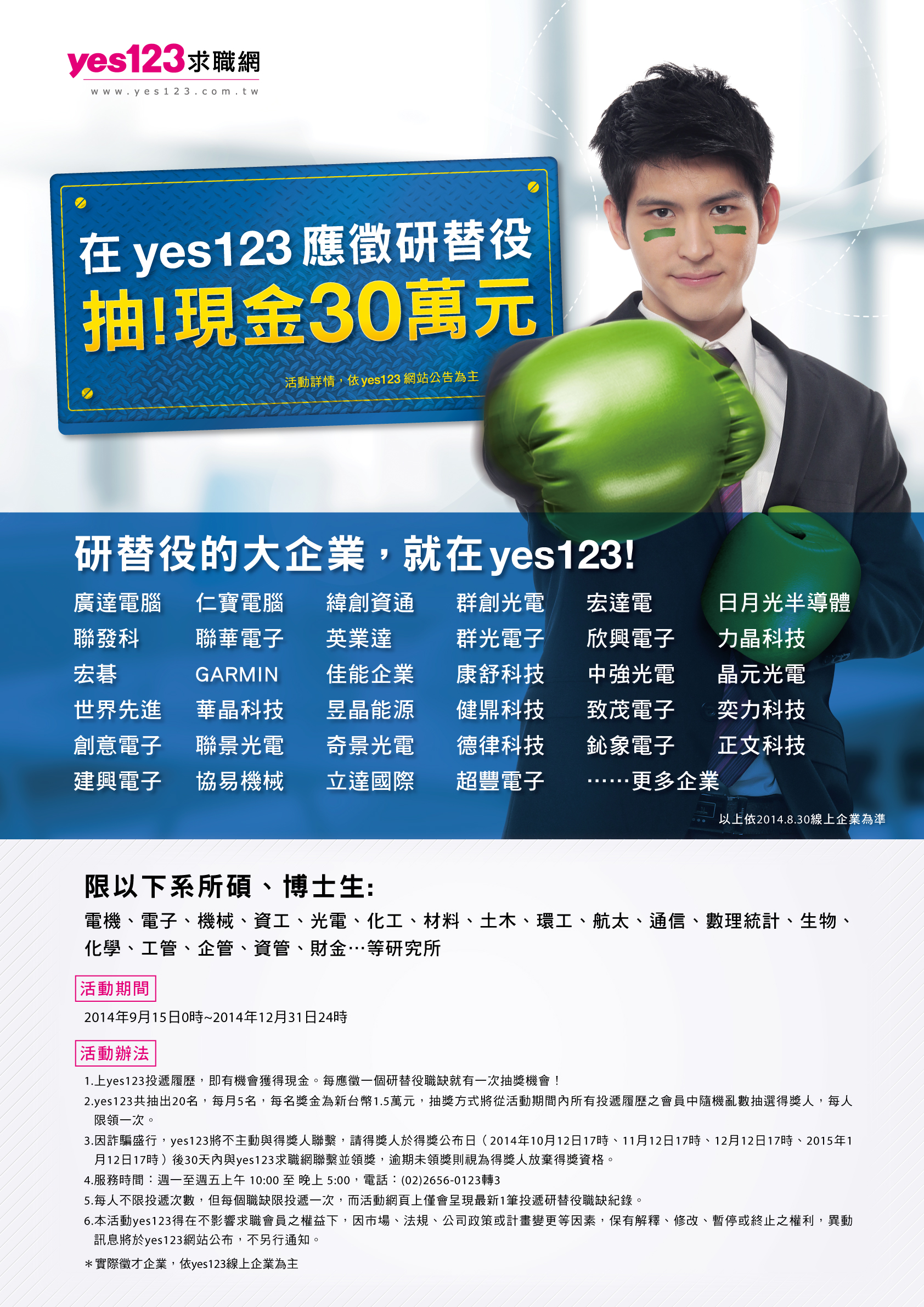 一二三生活科技股份有限公司來函,為協助企業媒合優良研發替代役男,提供最新研發替代役活動資訊予符合資格役男知悉,以期建立企業與學校之間研替役招募機制。